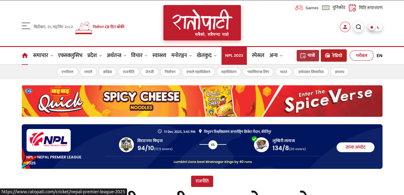 Ratopati is Nepal's leading online news portal, delivering up-to-the-minute news coverage, in-depth analysis, and engaging multimedia content to keep readers informed and connected.